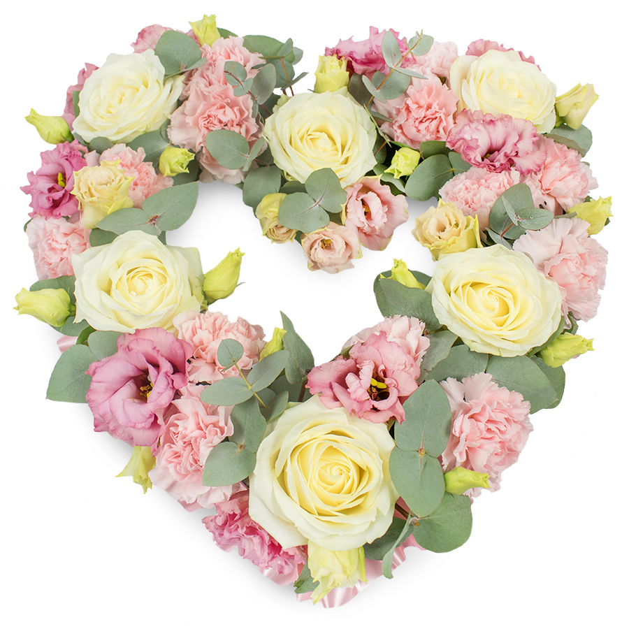 Express your heartfelt emotions with our beautiful open heart floral arrangement. This captivating bouquet features a stunning mix of white roses, pink carnations, pink lisianthus, and eucalyptus leaves, meticulously arranged to create a striking and meaningful display.